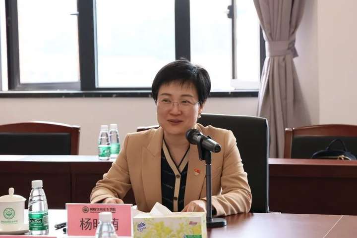 杨晓萌部长发表讲话。她表示,任命黄方军同志为网络空间安全学院副院长是学校党委经过综合研判、反复酝酿做出的决定。杨晓萌部长指出,黄方军同志政治表现好、科研能力强、工作经历丰富,在网络空间安全学院协管人才培养工作,积极担当作为,为推动学院人才培养、学科建设、科学研究等重点工作贡献了力量,相信在接下来工作中能很快进入角色,推动学院迈上新台阶,取得新成绩。