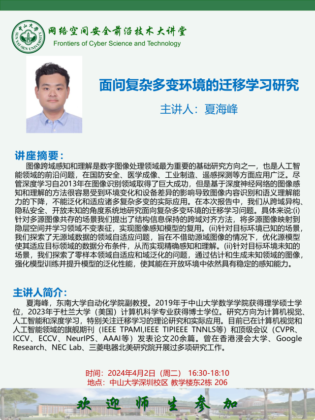 【网络空间安全前沿技术大讲堂】面问复杂多变环境的迁移学习研究